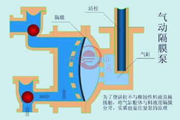 氣動(dòng)隔膜泵是由壓縮空氣為動(dòng)力,是目前是一種新型輸送機(jī)械,是目前國(guó)內(nèi)最新穎的一種泵類.,河山牌氣動(dòng)隔膜泵其有四種材質(zhì):塑料、鋁合金、鑄鐵、不銹鋼。隔膜泵根據(jù)不同液體介質(zhì)分別采用丁晴橡膠、氯丁橡膠、氟橡膠、聚四氟乙烯、聚四六乙烯。以滿足不同用戶的需要。安置在各種特殊場(chǎng)合,用來(lái)抽送種常規(guī)泵不能抽吸的介質(zhì),均取得了滿意的效果。氣動(dòng)隔膜泵的工作原理為